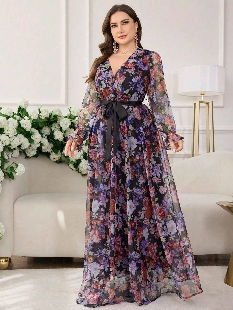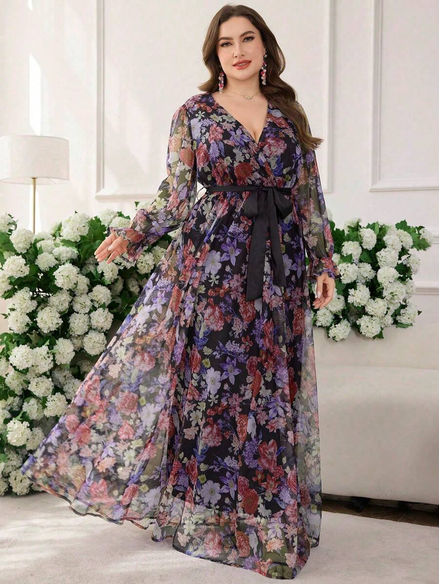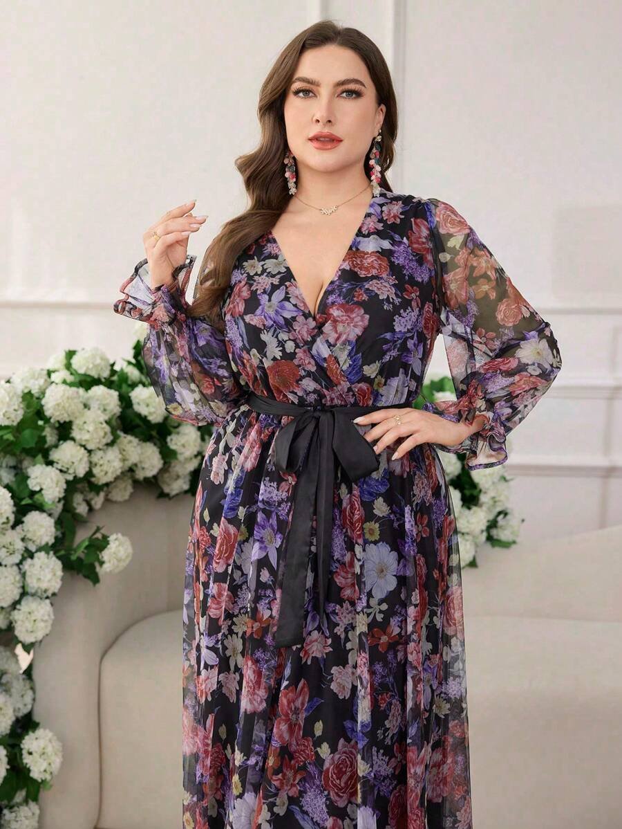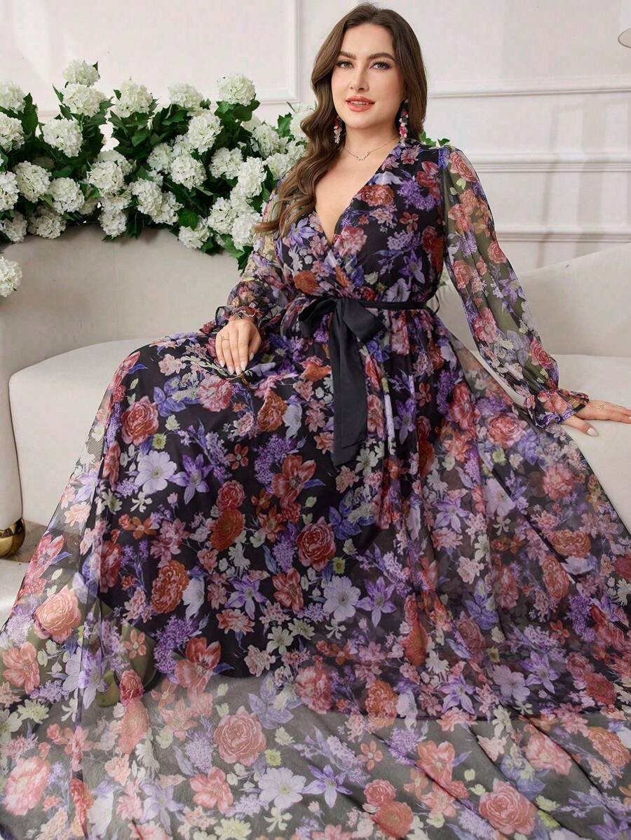 Cette robe élégante et moderne SHEIN grande taille se distingue par son col croisé raffiné qui met en valeur le haut du buste avec féminité. Les manches lanternes apportent une touche tendance et sophistiquée, tout en équilibrant harmonieusement la silhouette.