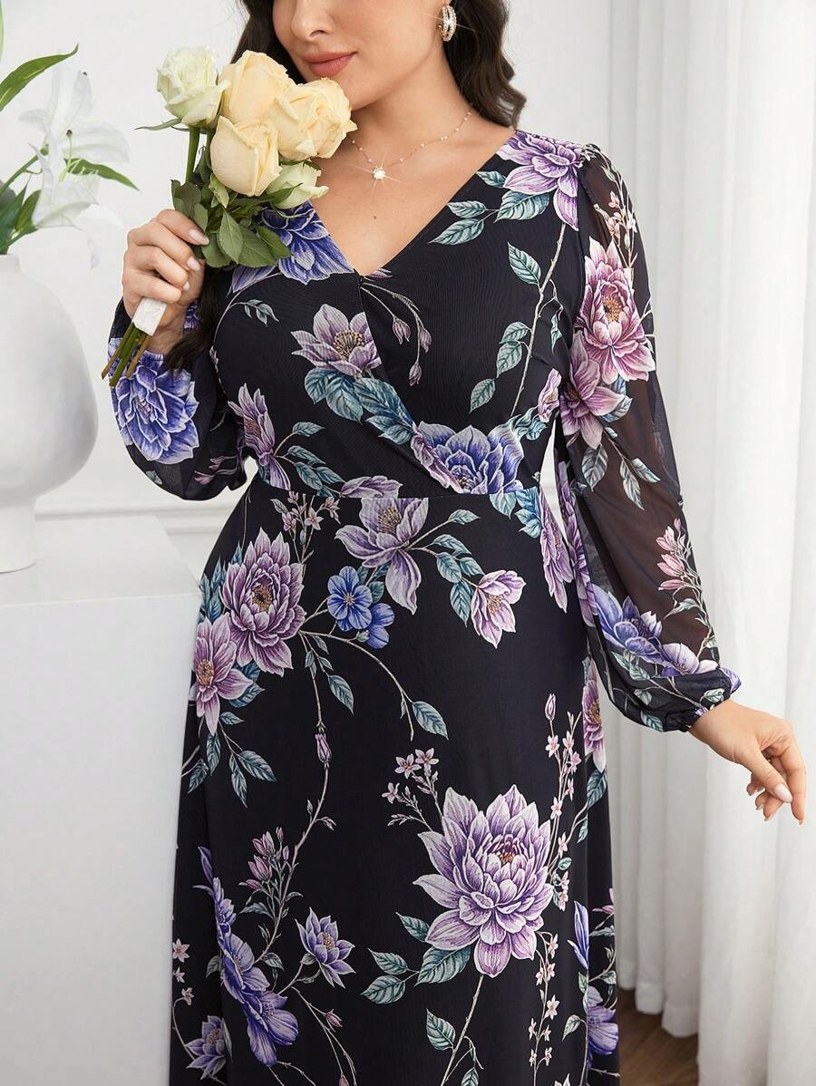 SHEIN GRANDE TAILLE (44/46/48/50/52/54) Robe élégante imprimée à fleurs avec manches lanterne