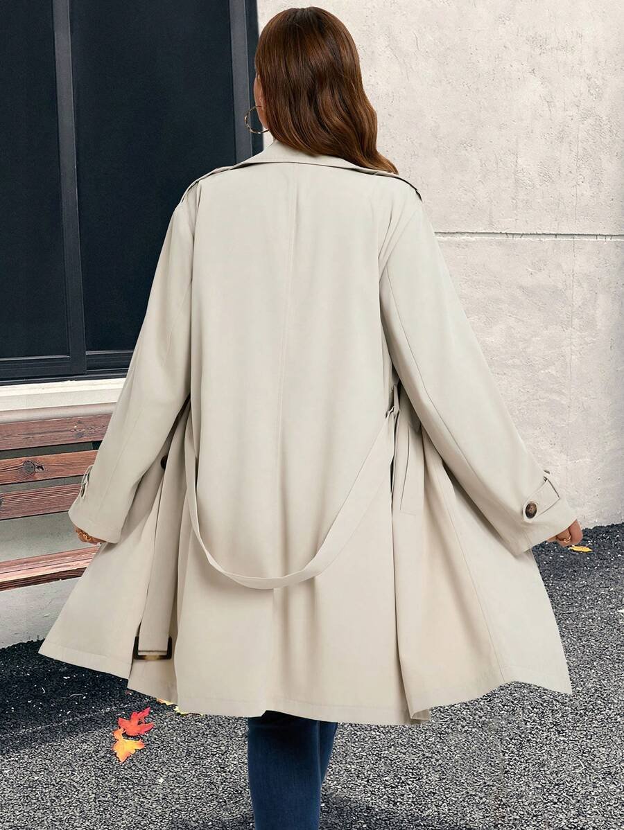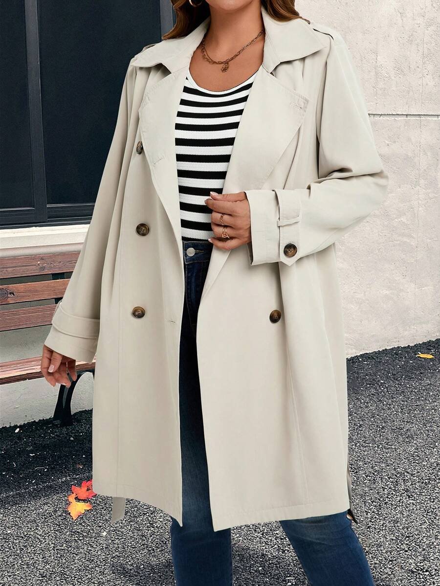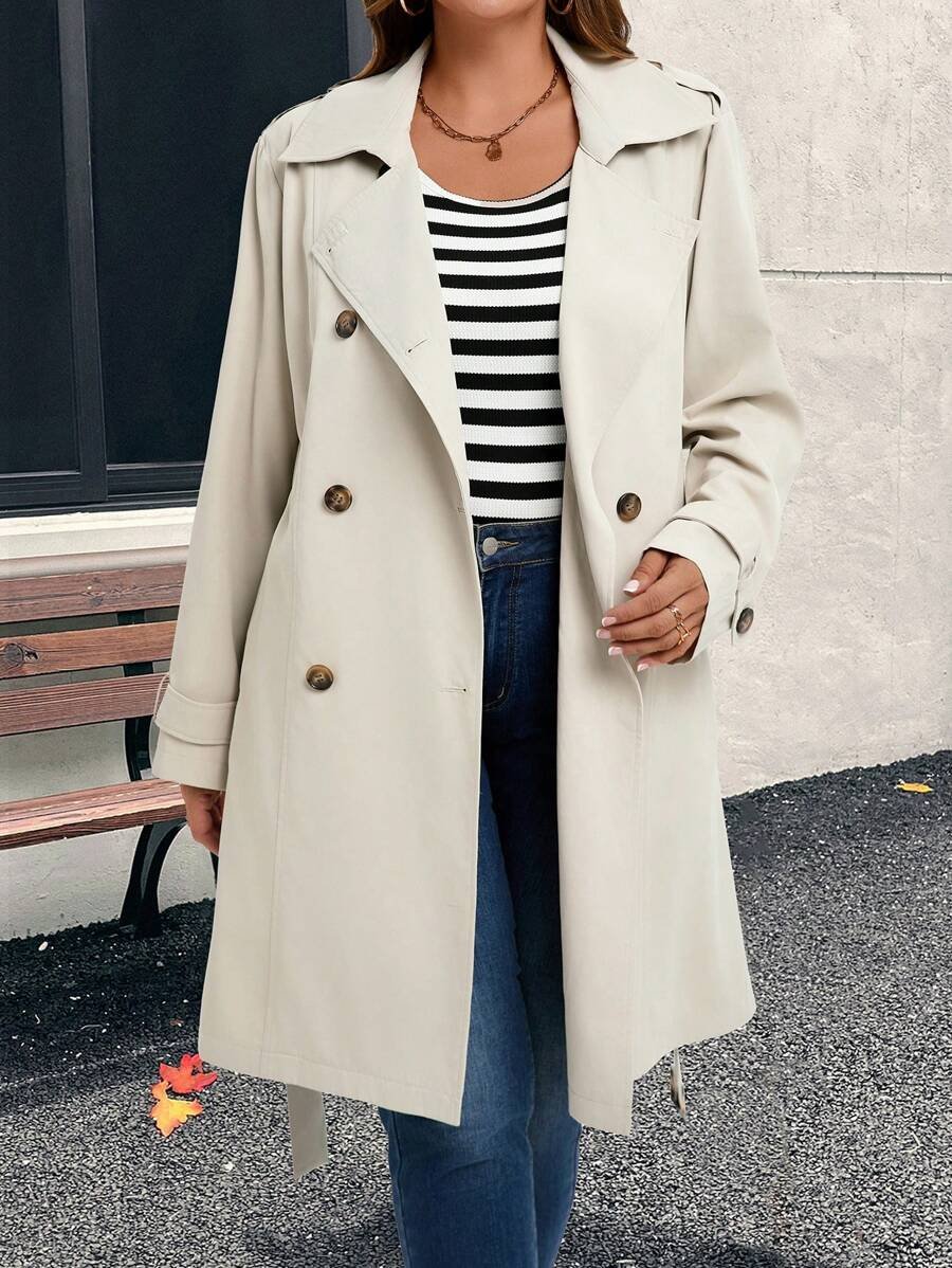 SHEIN GRANDE TAILLE (44/46/48/50/52/54) Trench casual élégant à double boutonnage pour femme
