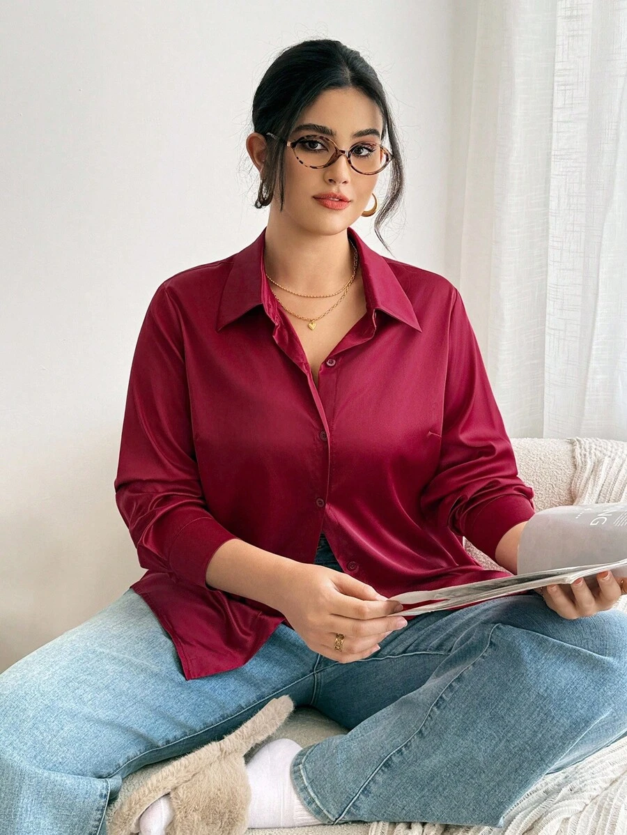 Chemise grande taille au design simple et épuré, idéale pour le bureau, les sorties et le port quotidien. Coupe confortable et style élégant facile à associer