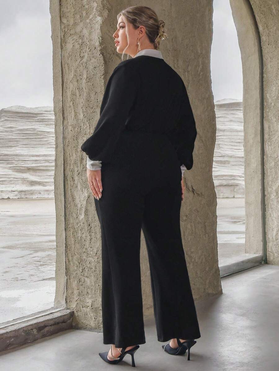 Cette combinaison grande taille séduit par son motif rayé élégant et son design fluide. Les manches lanterne apportent une touche de féminité raffinée, tandis que les jambes larges offrent confort et allure élancée. Sans ceinture, elle mise sur une coupe épurée, parfaite pour les sorties décontractées comme pour un look plus habillé