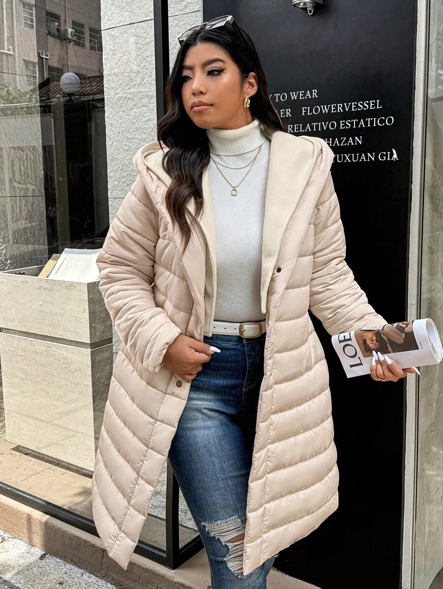 Manteau matelassé grande taille à capuche et manches longues, chaud, confortable et pratique pour l’hiver.