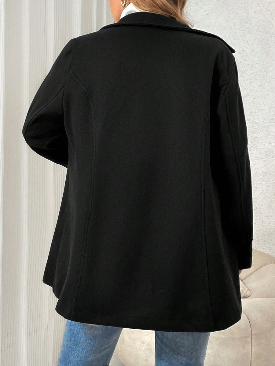 Manteau grande taille avec col rabattu dentelé et boutons frontaux, élégant et raffiné