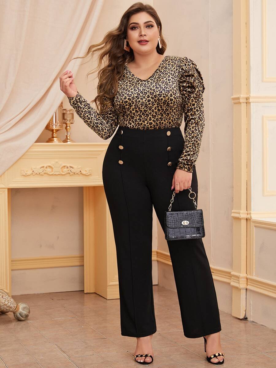 SHEIN GRANDE TAILLE (48/50/52/54) Pantalon grande taille fuselé avec double rangée de boutons