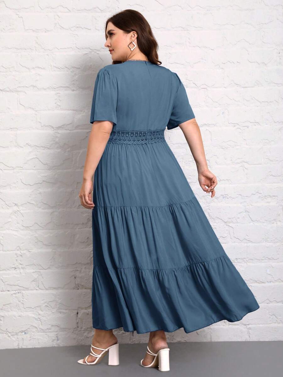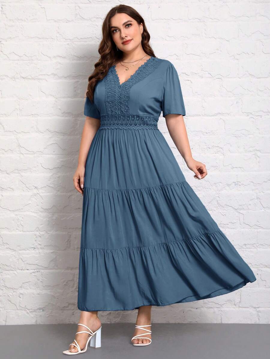 Cette robe longue unie SHEIN grande taille est un essentiel élégant et pratique pour les journées estivales comme pour les sorties décontractées. Son col en V flatte la silhouette, tandis que ses manches courtes assurent légèreté et confort. La coupe plissée ajoute du mouvement et affine la taille tout en offrant une allure féminine et fluide. Un choix parfait pour un look casual chic, aussi bien pour le quotidien que pour les occasions spéciales